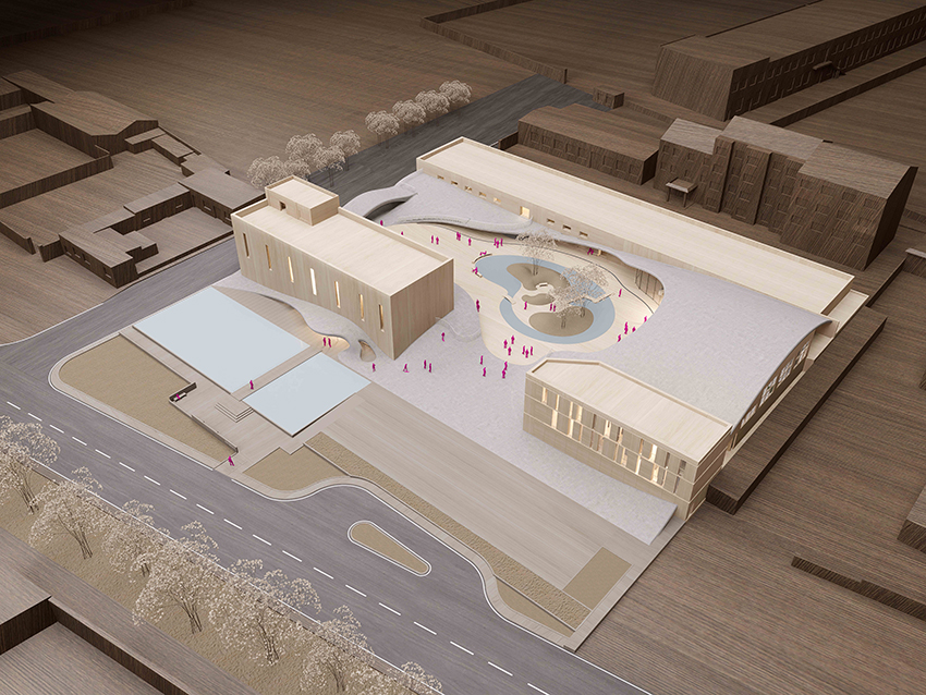 393 Art Center is located in the county of Chinese Gongbi painting: Ningjin County, Xingtai City, Hebei Province. Before the intervention of Daipu Architects, there were already three buildings of different periods and structural forms on the site, resulting in a discrete spatial relationship of the whole park and there is no well-planned circulation. Therefore, we apply a strategy: introducing the plane form of the palette, integrating the different forms of buildings; not only highlighting the artistic characteristics of the town of Gongbi painting with the palette, but also connecting the circulation of visits to form a very open external image and convergent central courtyard. When completed, it will welcome visitors from all directions to gather here, rejoice under the rain porch and in the square. The undulating concrete curves will continue to inspire new discoveries and feelings in the art center.